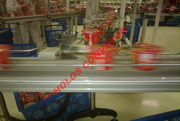 食品生產線:廣泛的應用于食品生產企業。方便面,薯片,餅干,膨化食品,生鮮食品,肉類,茶葉,水果罐頭,八寶粥,大米,面粉,口香糖,巧克力,醬油,調味品,糖果,食鹽,蜜餞,如:食品包裝機的進出料輸送,打碼工序,裝盒,裝箱機的進出料輸送。